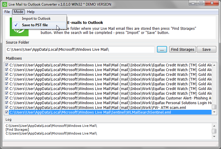 - Haga clic en "Guardar" para guardar los correos electrónicos en Outlook. Tenga en cuenta que puede seleccionar entre dos modos: exportar Windows Live Mail a Outlook 2021, 2019, 2016, 2013, 2010, 2007 directamente, o guárdelo como un archivo PST que luego puede importar manualmente.