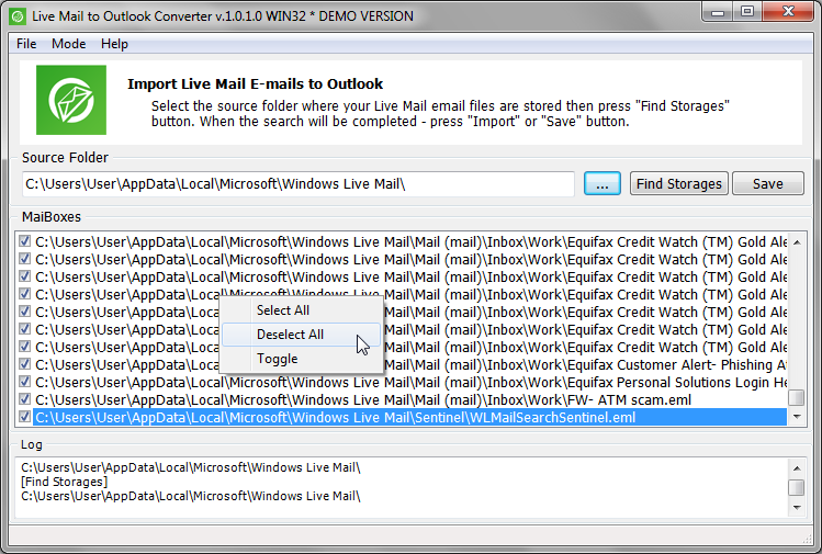 Convertidor de Windows Live Mail a Outlook encuentra automáticamente la ubicación de su carpeta WLM, lo escanea en busca de buzones de correo y ofrece un mecanismo simple y eficiente similar a un asistente para convertir todo el volumen de mensajes del cliente de correo electrónico obsoleto a la versión de Microsoft Outlook que prefiera. La herramienta es tan sencilla, que puede ejecutarlo y en breve terminar con todos sus correos electrónicos transferidos de forma segura a Outlook. Sin aprendizaje de formato de correo electrónico, sin leer docenas de guías de conversión, no es necesario ser un experto en tecnología.